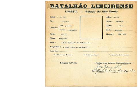 Ficha de Identificação do Batalhão Limeirense João Baptista de Antonieti