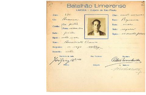 Ficha de Identificação do Batalhão Limeirense Benedicto Franco