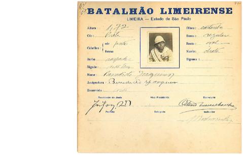 Ficha de Identificação do Batalhão Limeirense Benedicto Joaquim