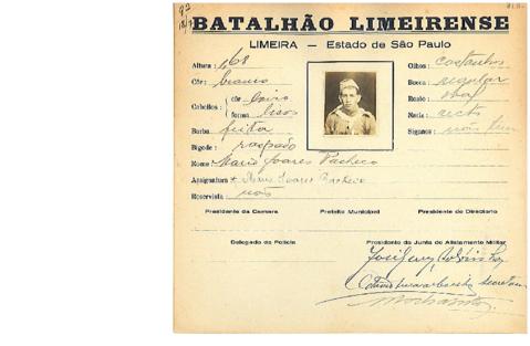 Ficha de Identificação do Batalhão Limeirense Mario Soares Pacheco