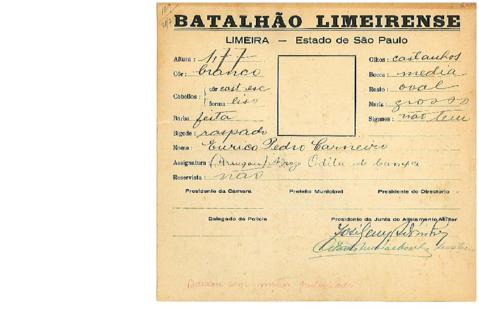 Ficha de Identificação do Batalhão Limeirense Eurico Pedro Carneiro
